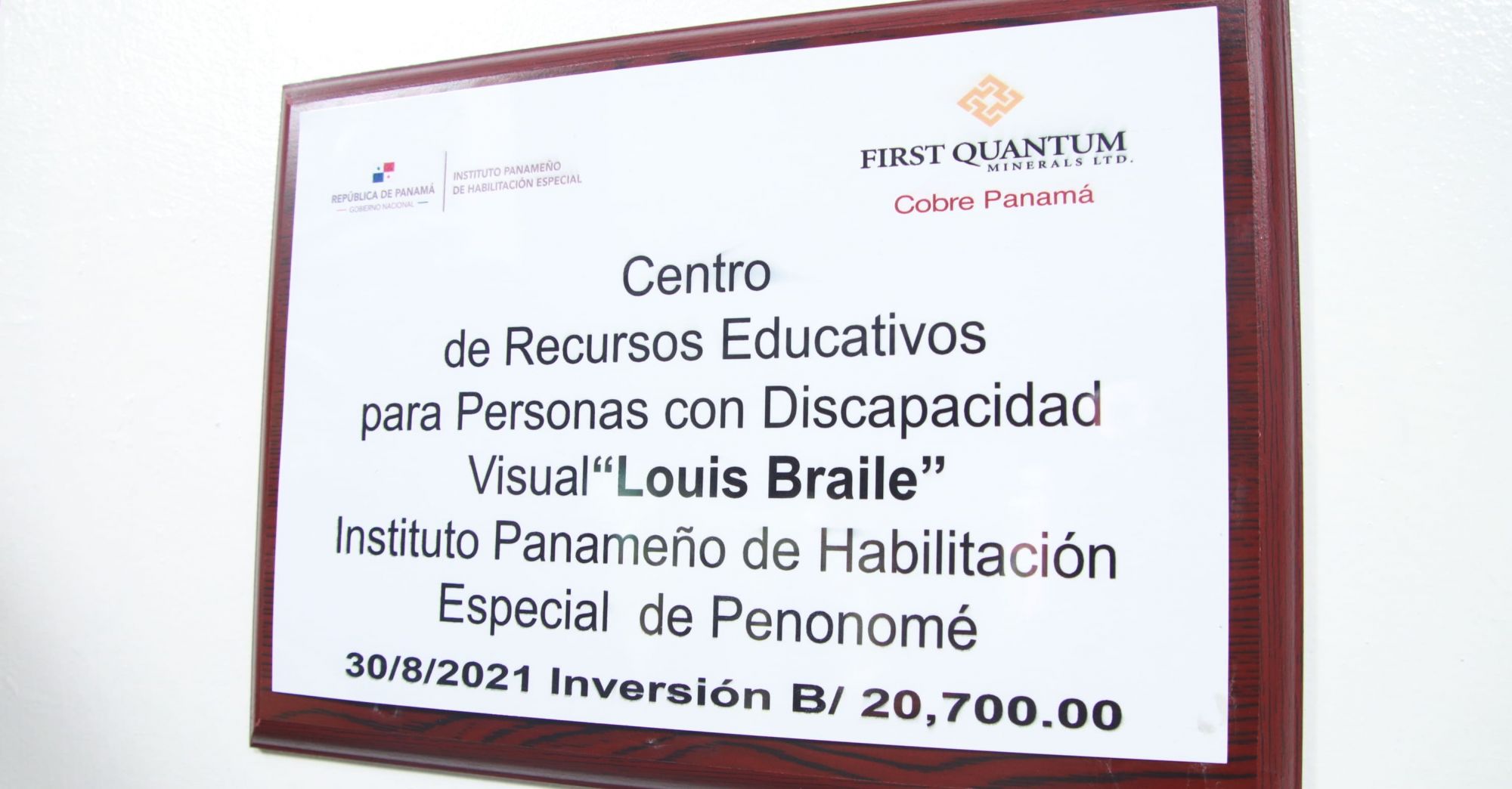 Panamá, 30 de agosto de 2021 – Más de medio centenar de alumnos con discapacidad visual de Penonomé y alrededores, a partir de hoy, recibirán una mejor educación tras la inauguración de una nueva aula en el Centro de Recursos Educativos para Personas con Discapacidad Visual Louis Braille, del IPHE de Penonomé, construida/donada por la empresa Cobre Panamá.